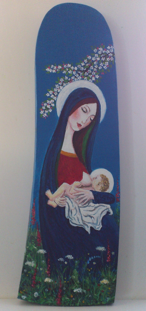 Ikona Matki Boskiej Karmi±Cej Svježe. Uczestniczy w wielu krajowych i zagranicznych warsztatach oraz plenerach. Ikona religijna wykonana za pomocą specjalistycznej techniki nanoszenia obrazu na drewno, werniksowana. Miejscowa tradycja, nawiązująca do objawienia się matki bożej starcowi gabrielowi głosi, że gdy ikona ta zniknie ze świętej góry, to nastąpi koniec świata.